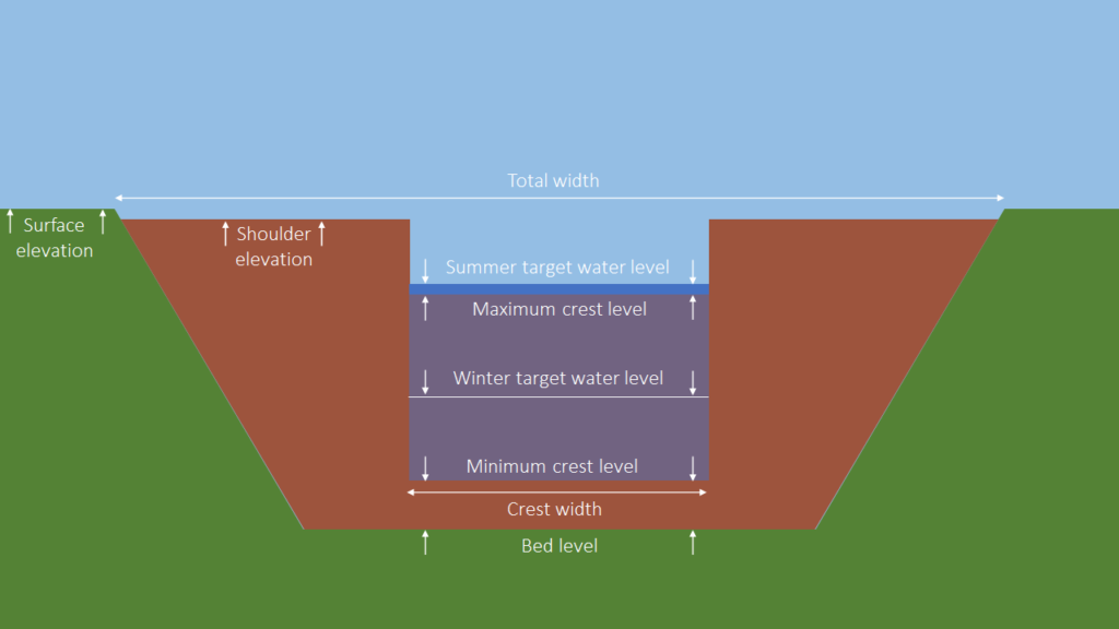 This type of structure typically contains a crest that can be moved up and down. The following variables are relevant in hydrological/hydraulic studies: